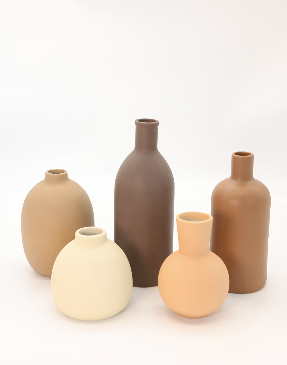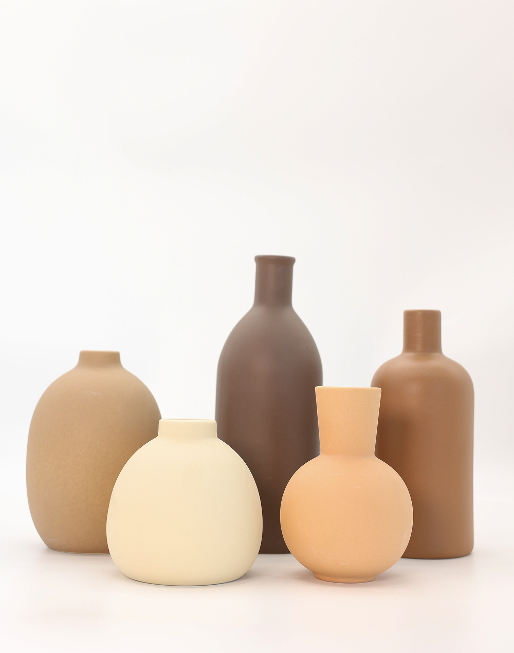 Product ID: XY100-1460Curated with a refined eye for form and balance, the Aurelia Vessel Collection features five sculptural ceramic vases in a soft, neutral palette. Each piece presents a distinct silhouette�from rounded vessels to elongated forms�creating a harmonious, gallery-style arrangement. Finished in warm ivory, soft sand, and muted earth tones, this collection brings a calm, elevated presence to any setting. Perfect for weddings, event styling, and contemporary interiors, these vases deliver timeless elegance with modern, minimalist decor appeal.
