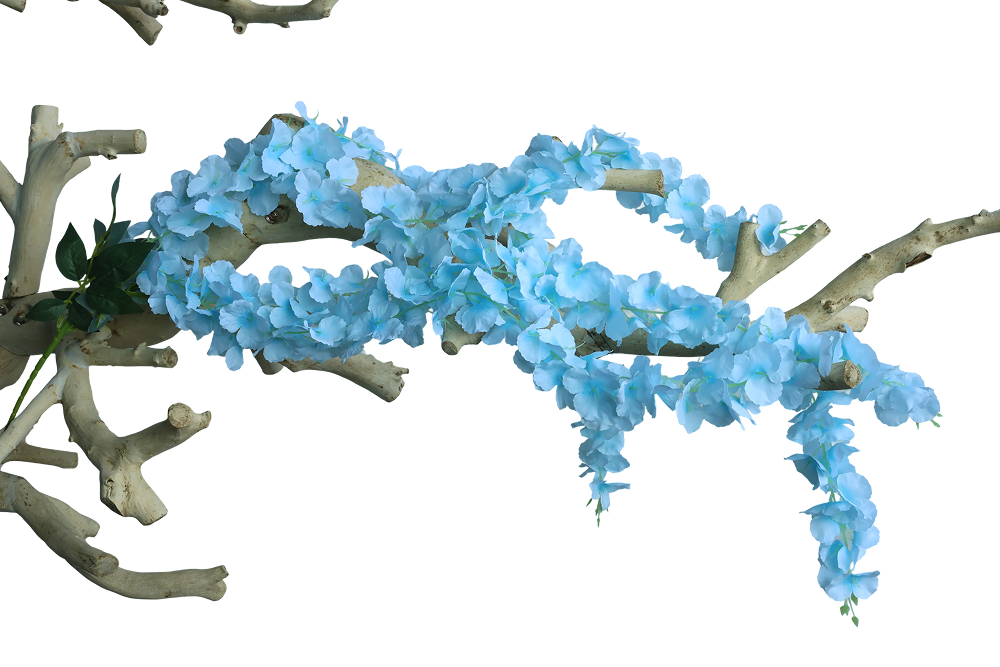 Product ID: AF-B-WISTERIALACE-240Luxury cascading light blue wisteria bunch with soft, lace-like blooms, perfect for upscale hanging installs, arches, and elegant event decor.