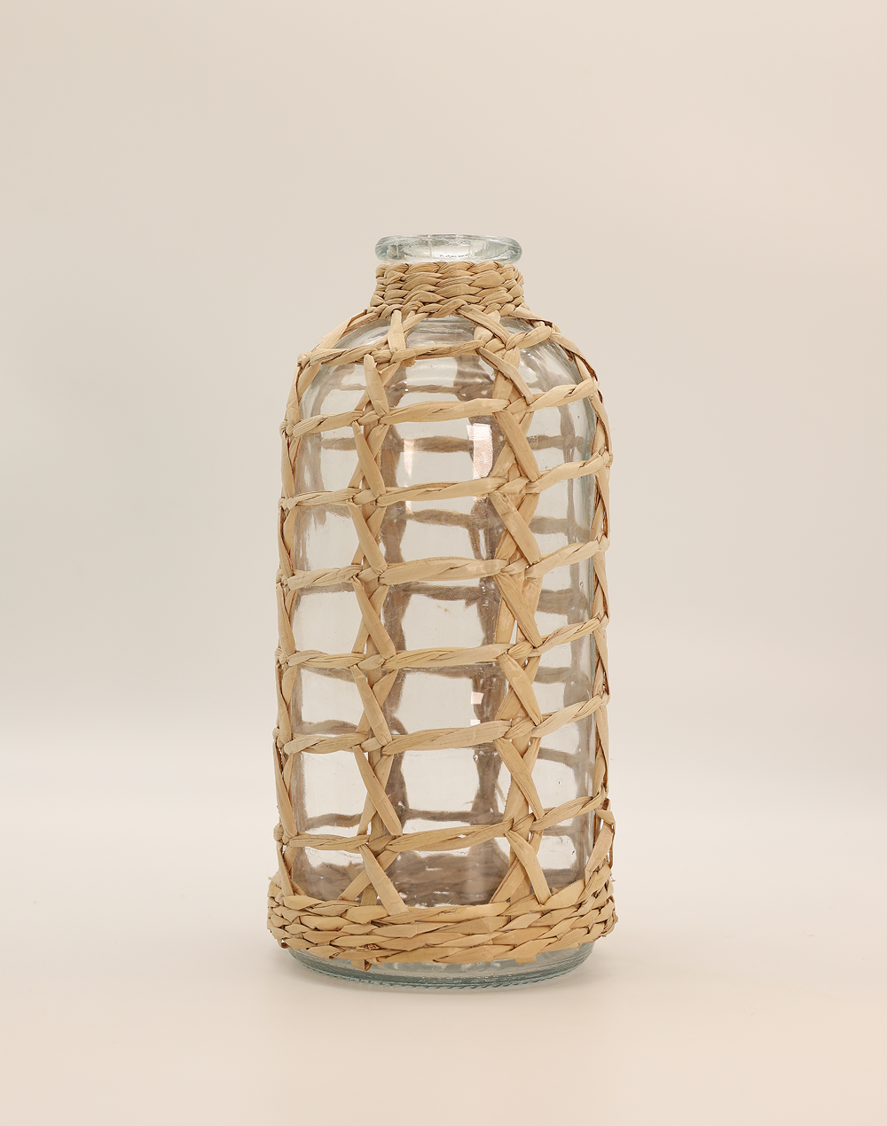 Product ID: BL23110B-1306Bring natural texture and effortless charm into your space with the Clear Ratum Medium Glass Bottle Vase. featuring a clear glass bottle encased in a handwoven rattan lattice, this piece blends organic materials with a refined silhouette. The warm, earthy tones and artisanal weave create a relaxed yet elevated look, ideal for beach-inspired decor, rustic weddings, and modern interiors. Perfect for displaying dried florals, pampas grass, or as a standalone accent, this decorative vase introduces depth, texture, and a timeless natural aesthetic to any setting.