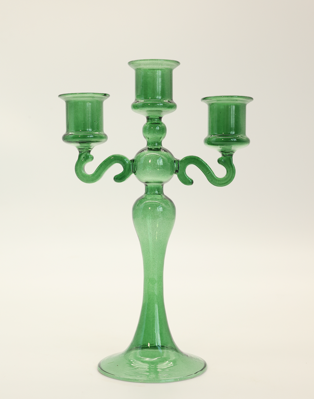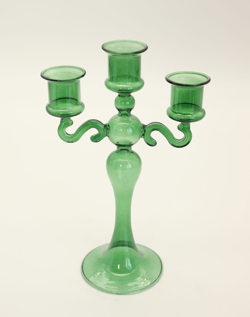 Green 3-Arm Glass Candelabra