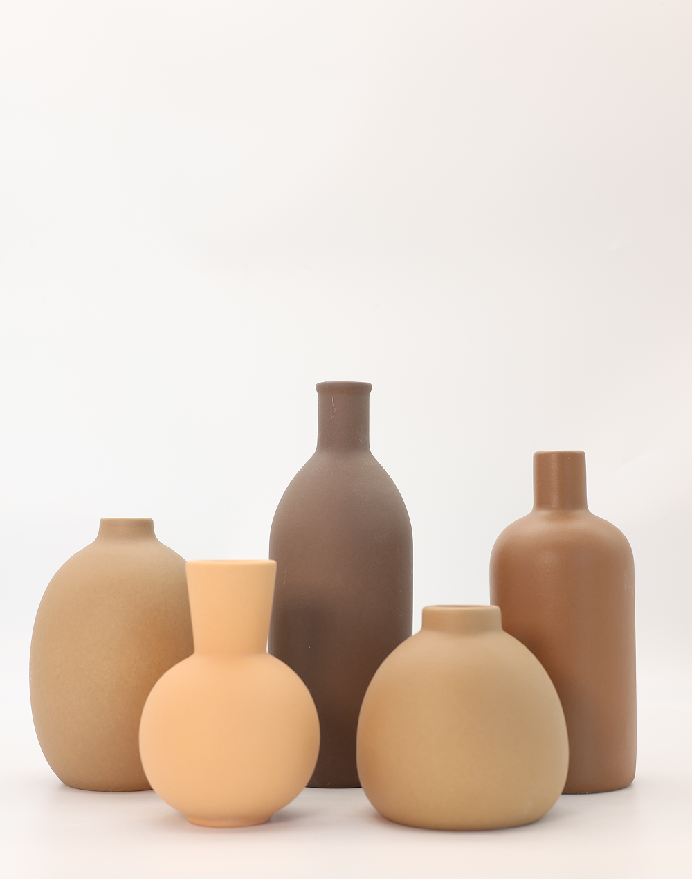 Product ID: XY100-1461Elevated through simplicity and tone, the Sable Form Collection features five sculptural ceramic vases designed in a rich palette of deep brown, warm sand, and soft neutral hues. Each piece showcases a distinct silhouette�from elongated bottles to rounded vessels�creating a curated, gallery-inspired arrangement. The matte finishes and organic forms bring warmth and balance to any setting, making this collection ideal for weddings, event styling, and modern interiors seeking refined, understated decor.