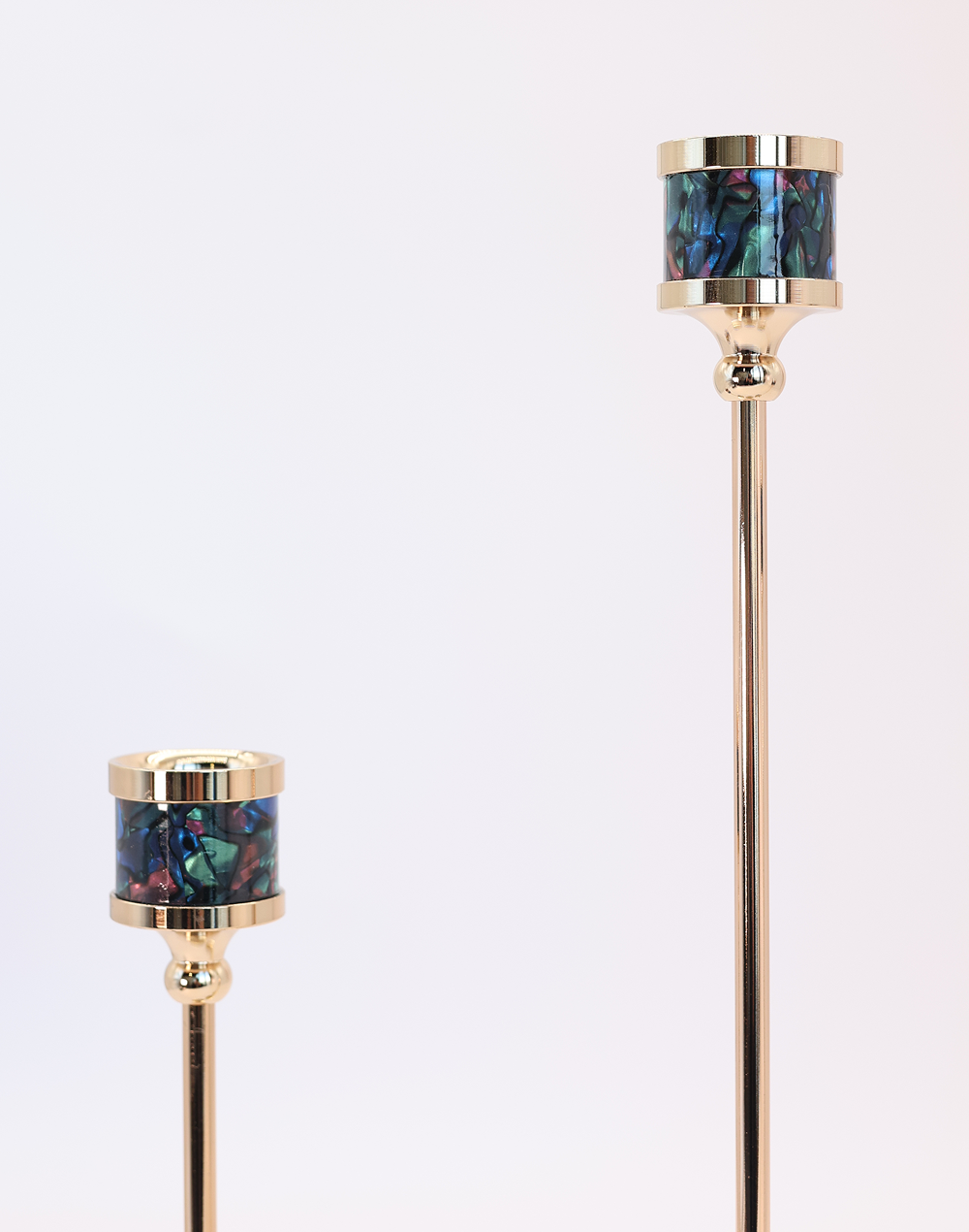 Product ID: A828-1447A bold fusion of contrast and elegance, the Noir Luxe Gold Taper Candle Holders feature sleek black stems paired with polished gold tops for a striking, modern look. The graduated heights create a dynamic vertical display, perfect for adding depth and sophistication to any tablescape. Ideal for weddings, event styling, and upscale interiors, this trio delivers a refined statement with contemporary luxury and timeless appeal. Presented in three refined height variations (12.5"10.5",8.5")