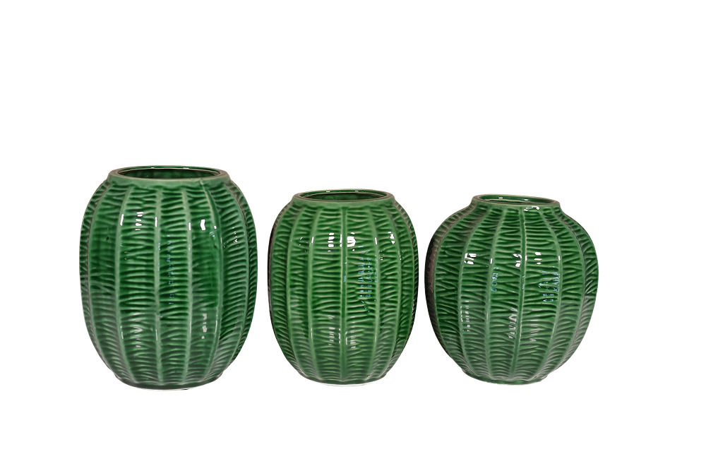 Product ID: CV-SABA-G276Bringing a fresh pop of nature-inspired design to your space, this glazed ceramic vase charms with its playful melon-inspired silhouette. The rounded form catches light beautifully, while the verdant green finish adds an organic touch to any room. Available in two sizes, it's equally stunning as a standalone decorative piece or filled with your favorite blooms. Part of the Saba green collection, this versatile vase transitions seamlessly from everyday display to special occasions. Place it on a dining table, bookshelf, or mantel its curved shape and rich green hue create an eye-catching focal point that feels both fresh and timeless.