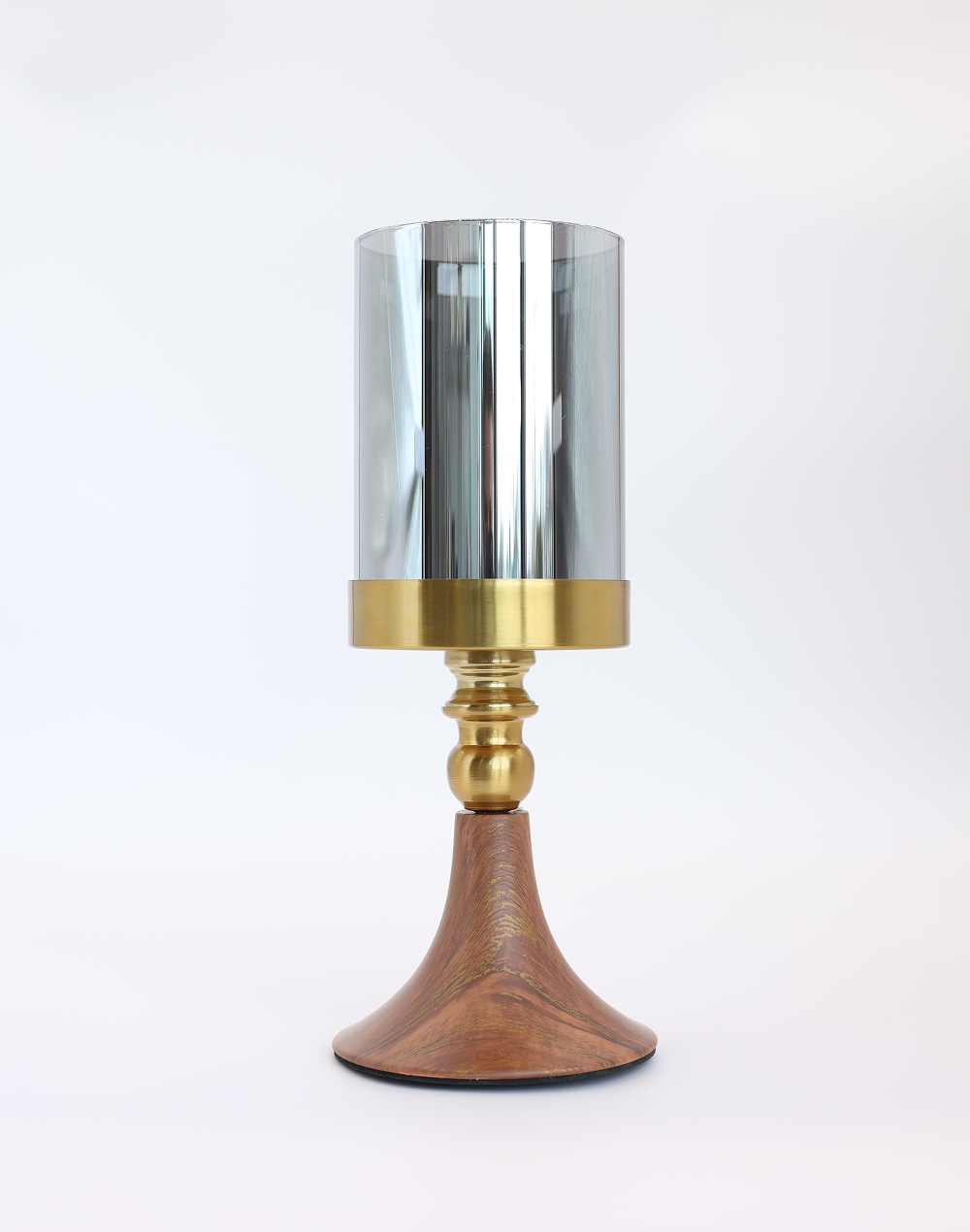 Product ID: smoky gray M-1439BMoody and refined, the Smokewood Glass Candle Holder features a deep smoked glass cylinder paired with a warm wood base and subtle metallic detailing. The contrast between the dark glass and natural wood creates a rich, layered look that adds depth and sophistication to any setting. Sold individually, this candle holder is perfect for weddings, event decor, and upscale interiors seeking a modern, atmospheric statement.